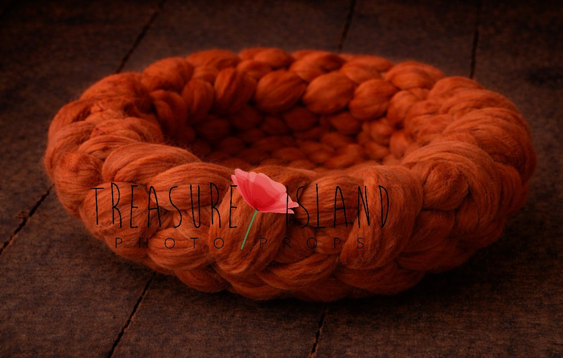 A beautifully thick hand-braided wool nest, created especially for professional newborn photography.